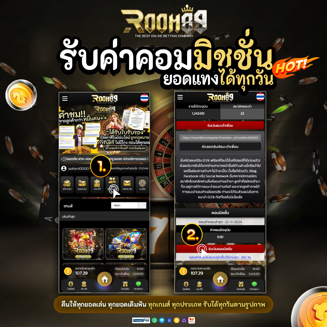 🎁แนะนำเพื่อนมาสู่ครอบครัว Room89 รับ 0.5% ทุกยอดเล่นของเพื่อน🎁